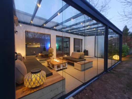 Maatwerk voor glazen schuifwandenEen nieuwe buitenruimte waar u ieder seizoen geniet, wordt pas compleet met op maat gemaakte glazen schuifwanden. Ze maken een overkapping of veranda helemaal af.
